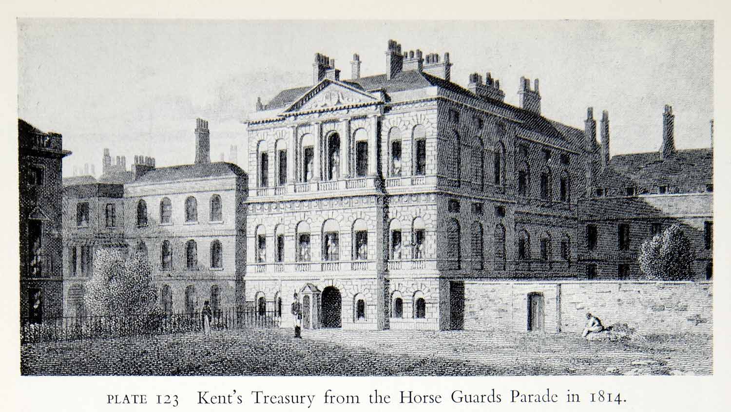 This is an original 1951 black and white halftone print of Kent's Treasury which we believe was located in London, England, and was designed by English architect William Kent (1685-1748).