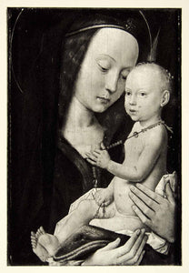 This is an original 1951 monochrome rotogravure of the Virgin Mary and the baby Jesus.
