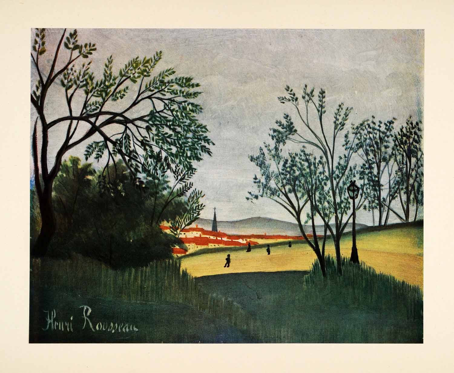 1951 Tipped-In Print Landscape City France Henri Rousseau Park Scenery XAF8
