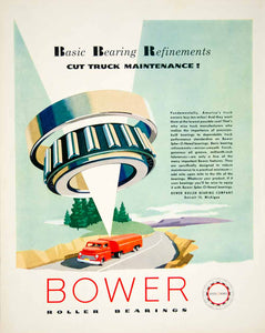 This is an original 1952 color print ad for the Bower Roller Bearings Company, based in Detroit, Michigan.