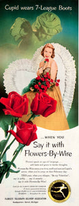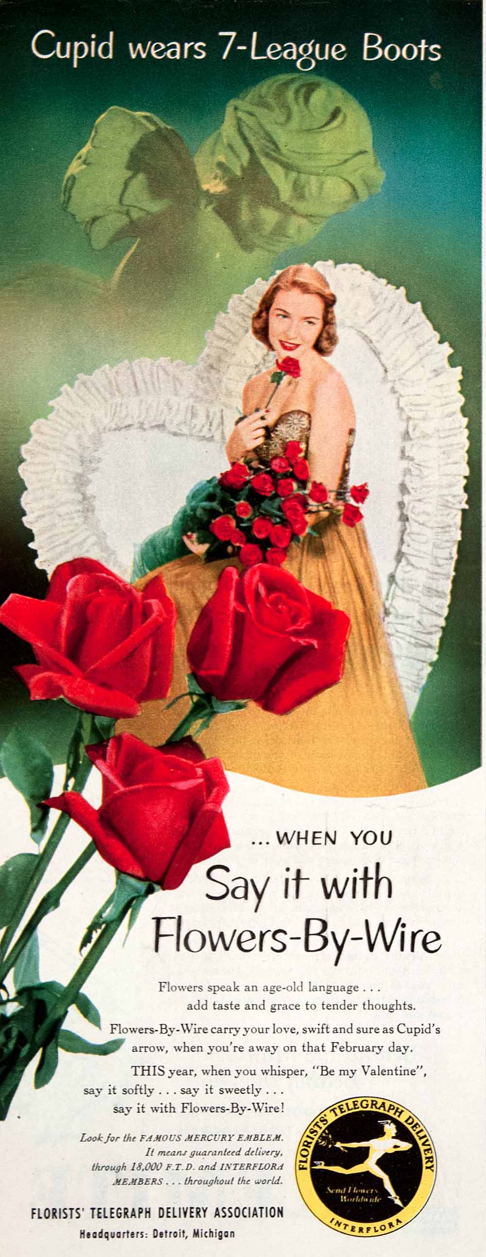 This is an original 1952 color print ad for "Florist' Telegraph Delivery," (FTD Florists) from the Florist's Telegraph Delivery Association, then headquartered in Detroit, Michigan. "Say it with Flowers-By-Wire!"