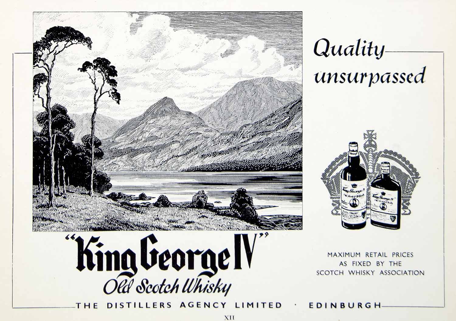 This is an original 1952 black and white print ad for "King George IV Old Scotch Whisky," then in Edinburgh, Scotland.