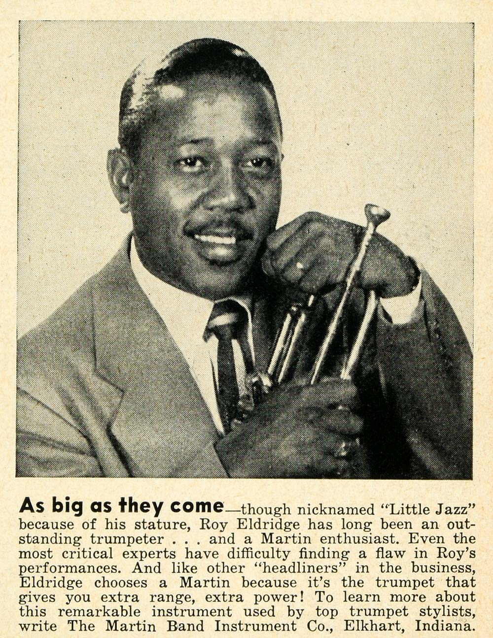 Keywords specific to this image: Vintage Advertising, trumpet, trumpeting, instrumental, instrumentalist, music, musician, musical, portrait, performer, tritone, Dizzy Gillespie