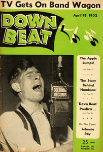 This is an original 1952 color cover for Down Beat Magazine for April 18th; this cover features Johnnie Ray (John Alvin Ray), the famous jazz- and blues-inspired songwriter and pianist of the 1950s.CONDITION
