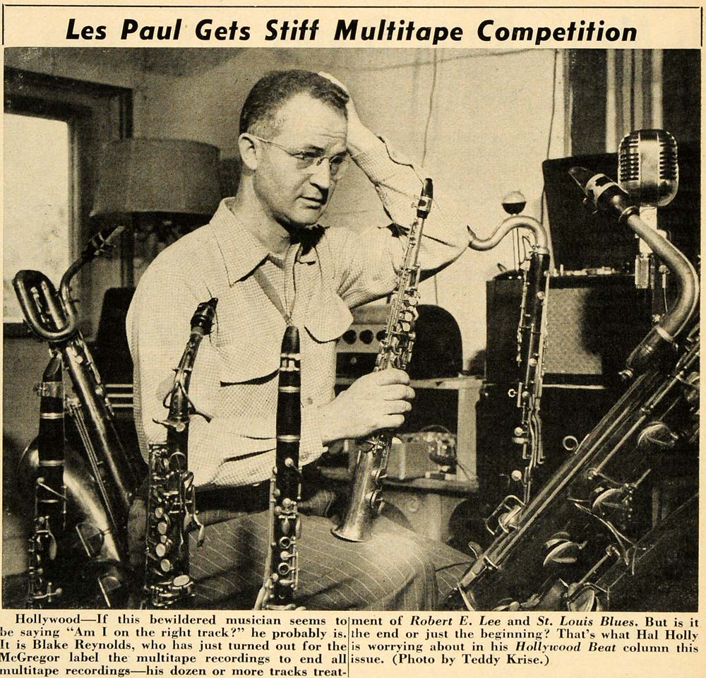 Keywords specific to this image: clarinetist, Les Paul, saxophonist, instrumental, instrumentalists, tape, recording, record, musical, music, musician, McGregor, tracks, Robert E. Lee, St. Louis Blues, Hal Holly, Hollywood Beat, Teddy Krise