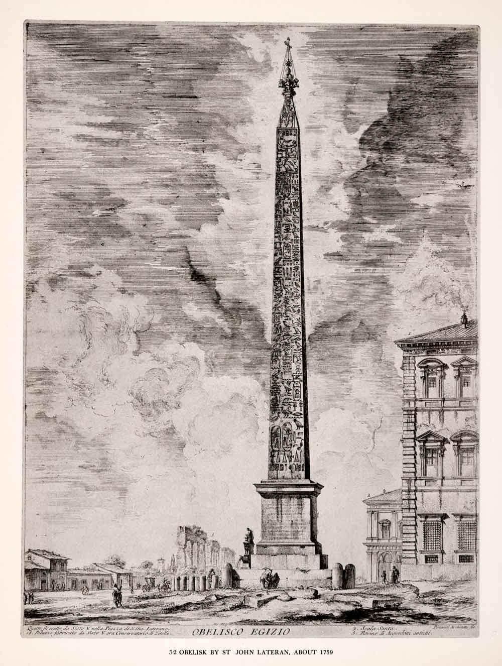 This is an original 1952 halftone print of an Egyptian Obelisk commissioned by Pharaoh Thutmose III and the Basilica of St. John Lateran in Rome, Italy.