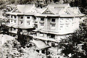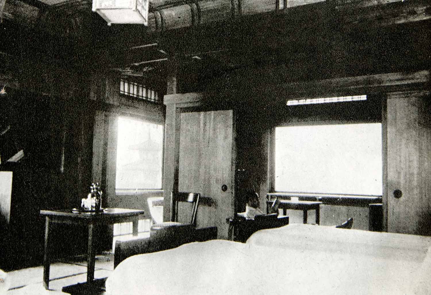 This is an original 1952 black and white rotogravure set that depicts a new addition to the Fujiya Hotel, the "Flower Palace", where guests can enjoy spectacular views of the neighboring mountains. Please be sure to view the additional image.