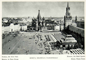 This is an original 1952 black and white rotogravure of Red Square in the city of Moscow, Russia,