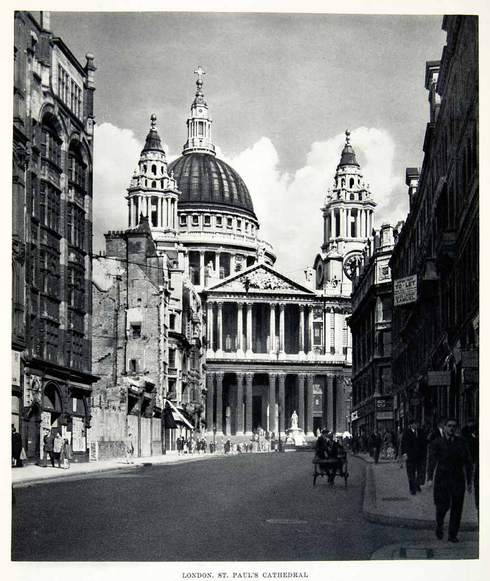 This is an original 1952 black and white rotogravure of St. Paul's Cathedral located in the city of London, England. Aside from being the second largest church building in all of England, it serves as the diocese of the Anglican church.