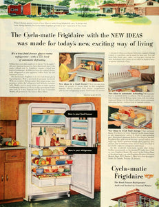 This is an original 1953 color print ad for the Cycla-matic Frigidaire Food Freezer-Refrigerator Imperial model IS-106 from Frigidaire Division of General Motors located in Dayton, Ohio.