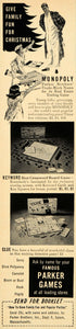 1953 Ad Monopoly Board Game Parker Brothers Christmas - ORIGINAL ADVERTISING TM3