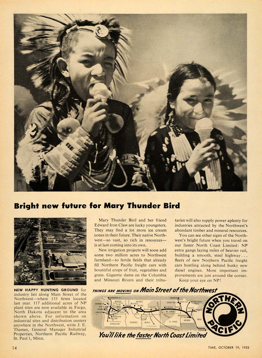 1953 Ad Northern Pacific Railway Mary Thunder Bird - ORIGINAL ADVERTISING TM5