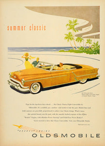 This is an original 1953 color print ad for the Oldsmobile Classic Ninety-Eight Convertible, specially featuring the Ninety-Eight Convertible Coupe.