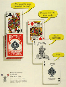 This is an original 1953 color print ad for the Bicycle Rider Back Playing Cards from United States Playing Card Company located in Cincinnati, Ohio.