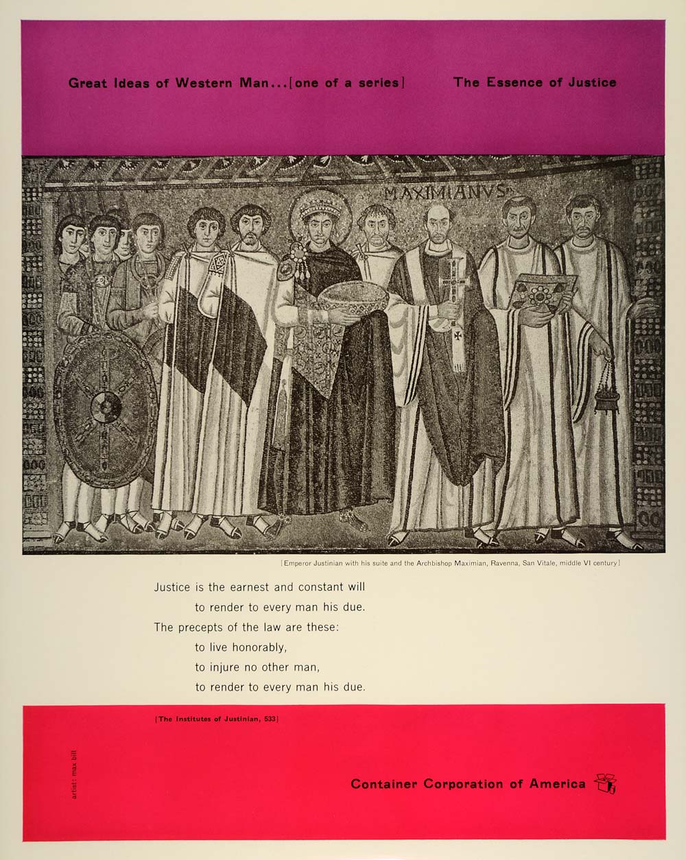 1953 CCA Art Max Bill Emperor Justinian Justice Print - ORIGINAL CCA1