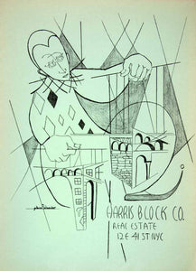 1953 Lithograph Jo Anne Schneider Art Harris Block Real Estate New York AEFA1