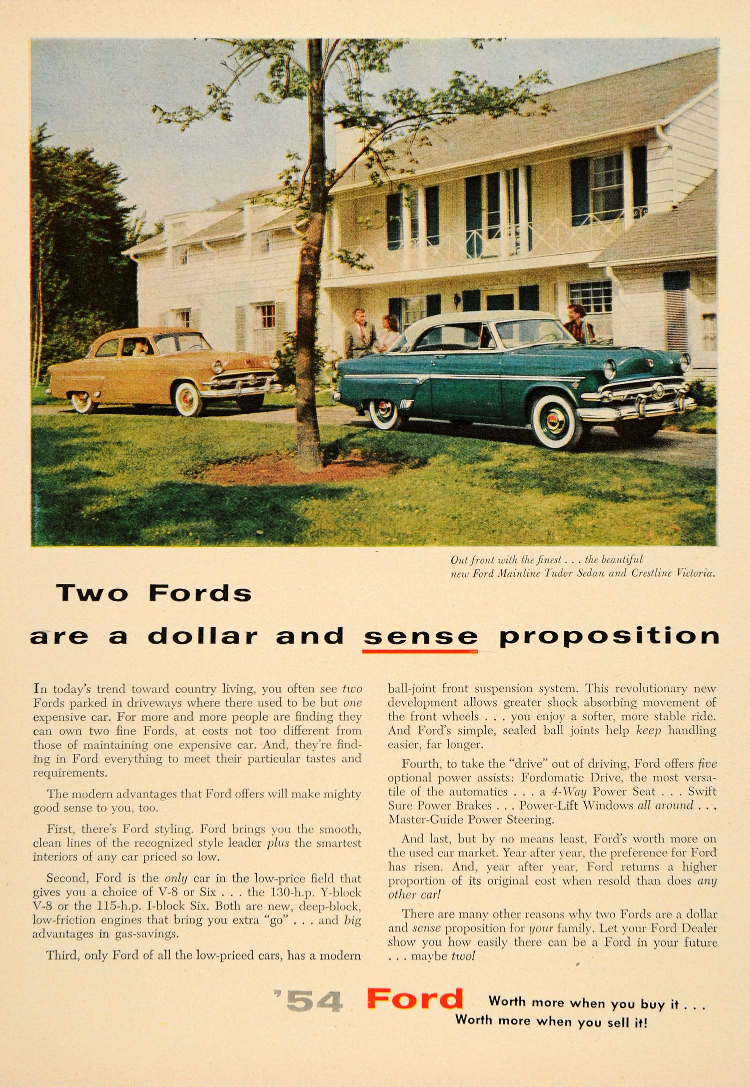 Keywords specific to this image: Vintage Ford Vehicles, Four Way Power Seat, Power Brakes, Power-Life Windows, Master-Guide Power Steering, V8 Engines, V6 Engines, Horsepower, Family Cars, Country Living, Car Features Vintage Advertising
