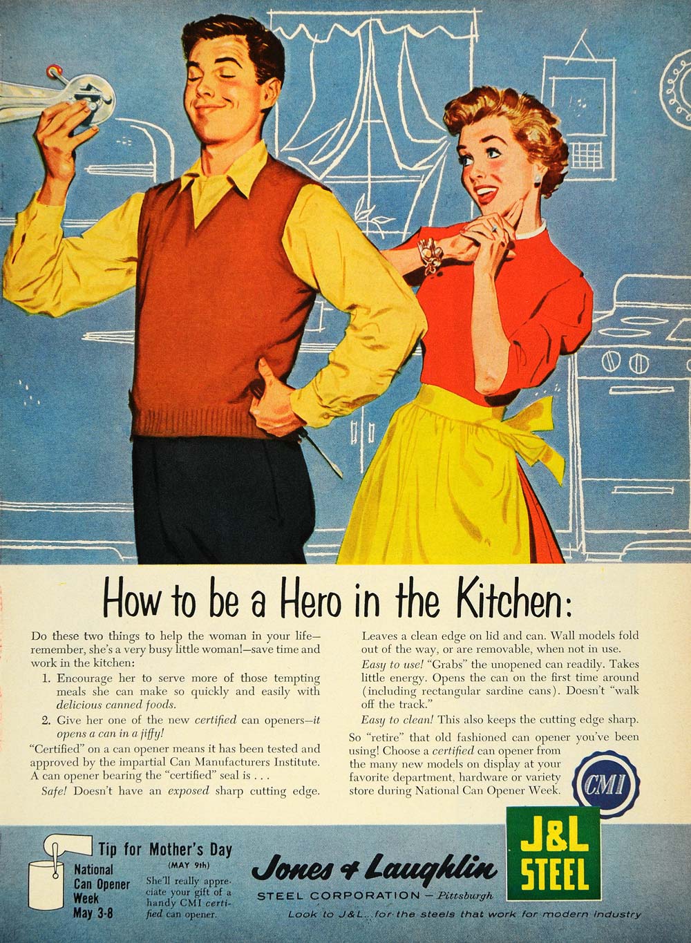 Keywords specific to this image: Vintage Advertising, Mother's Day, National Can Opener Week, Husband, Wife, Marriage, Kitchenware, Household Items, Kitchen Appliances