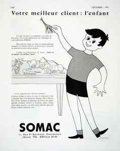 This is an original 1954 black and white print ad for SOMAC, encouraging business owners to target the toy-loving nature of children in order to promote their products to parents.