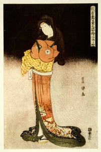 This is an original 1954 color tipped-in print of a portrait by Utagawa Toyokuni that depicts the actor Iwai Hanshiro in a feminine role.
