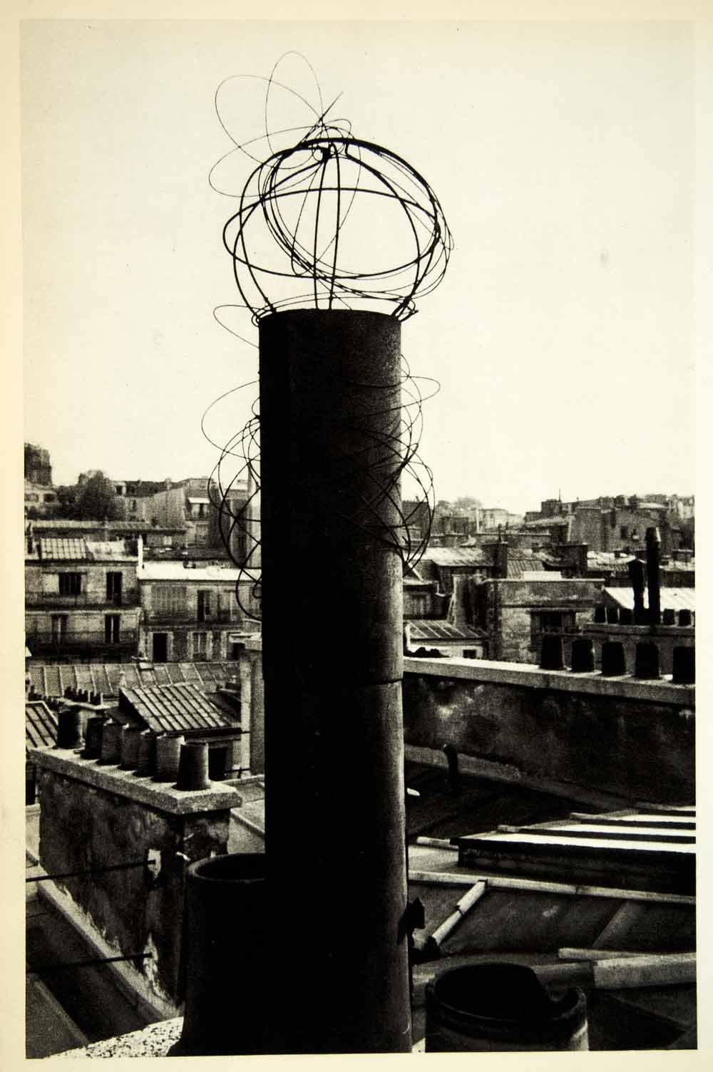 This is an original 1954 black and white rotogravure of a view of "Chimney Pots," in Paris, France.