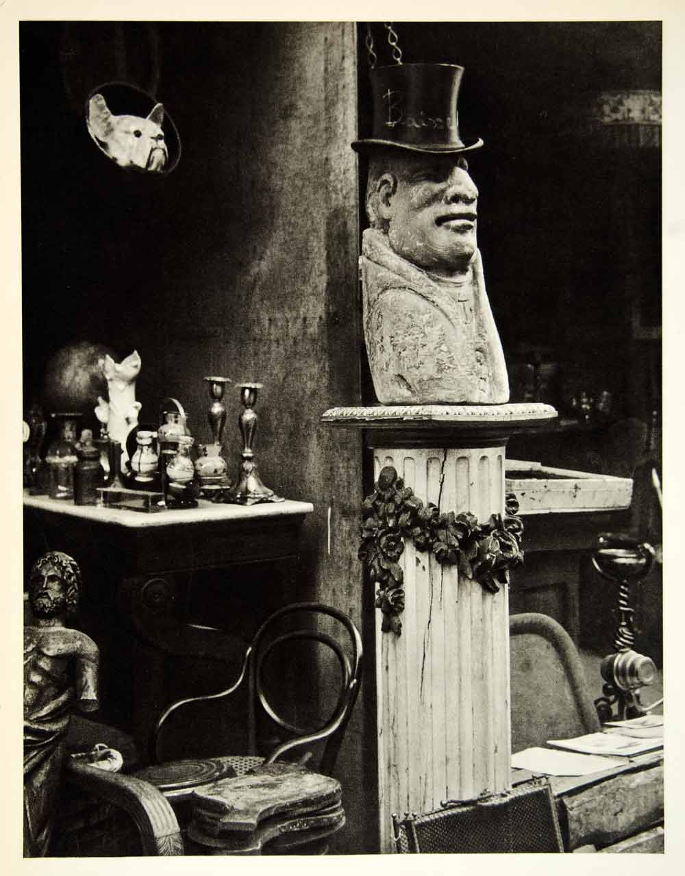 This is an original 1954 black and white rotogravure of a "Flea Market, Marché Paul Bert," in Paris, France.