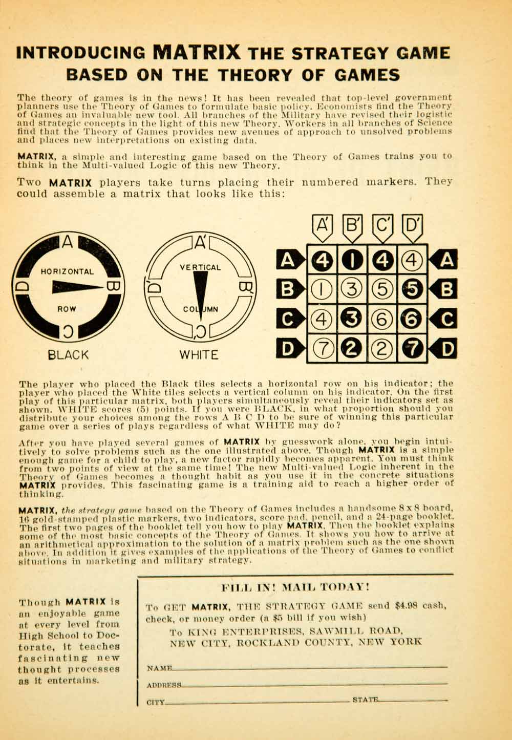 1955 Ad Matrix Logic Game Toy Strategy King Enterprises Sawmill Rd New YSFC3