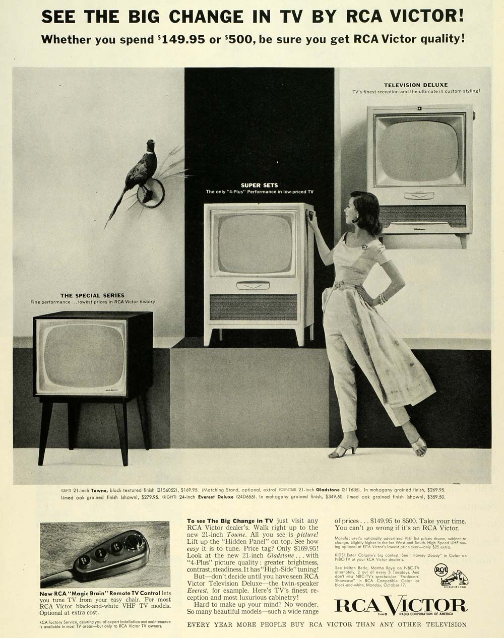 This is an original 1955 black and white print ad for the RCA Victor Television Deluxe from Radio Corporation of America.