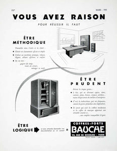 This is an original 1955 black and white print ad for safes from Bauche of 93 Rue de Richelieu of Paris, France (Republique Française).