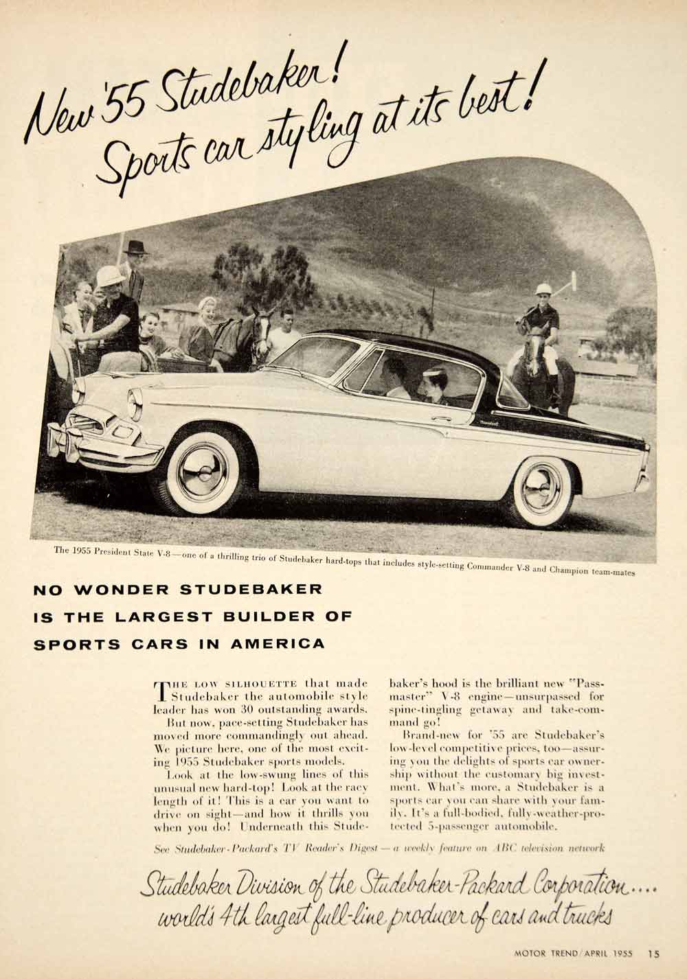 This is an original 1955 black and white print ad for the 1955 Studebaker President State V8 2-door hardtop coupe.