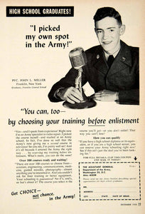This is an original 1955 black and white print ad for military training and education that was offered to recruits of the United States Army.