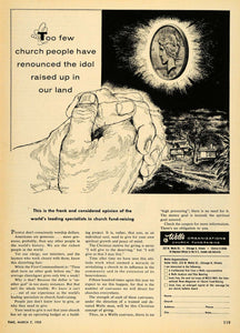 This is an original 1955 black and white print ad for the Wells Organizations of Church Fundraising.