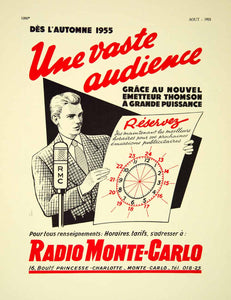 This is an original 1955 two-color French lithograph ad for Radio Monte-Carlo.