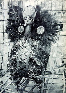 This is an original 1955 duotone rotogravure of bird made of clay and tinsel that is meant to represent Burak which was the animal on which Muhammad ascended to heaven, according to Muslim belief. This bird is used in processions during the Mohurram festival in Ajanta which is located in the Aurangabad district of Maharashtra, India.