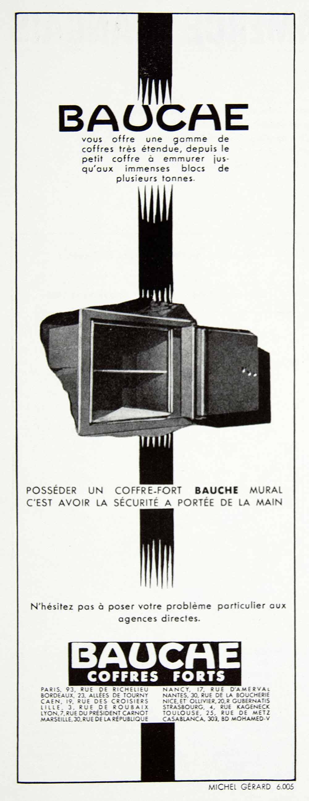 This is an original 1956 black and white print ad for Bauche wall safes.