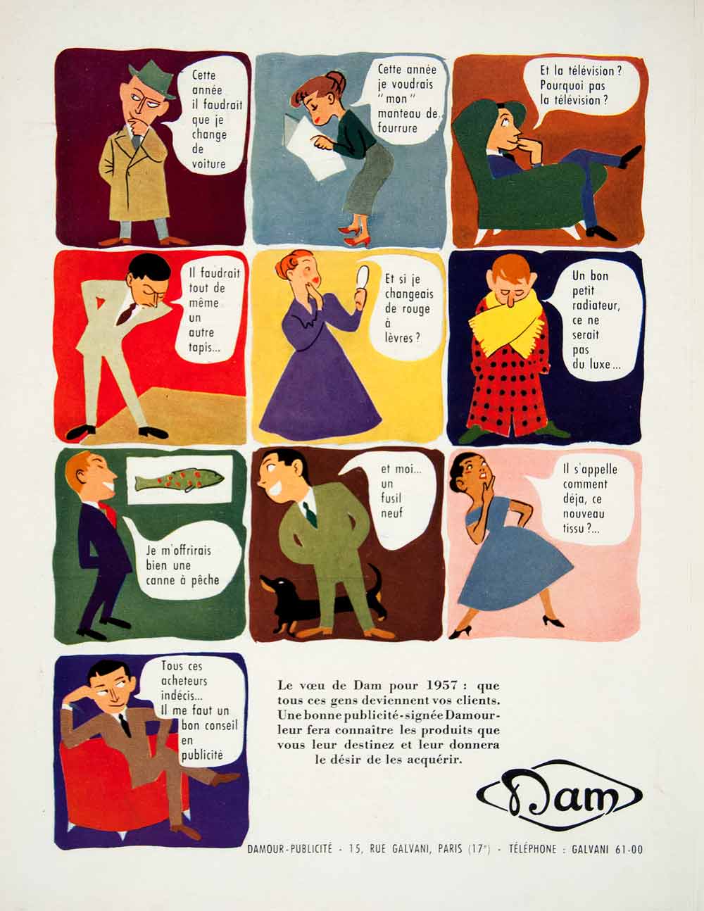This is an original 1956 color print ad for Dam, a French advertising agency.