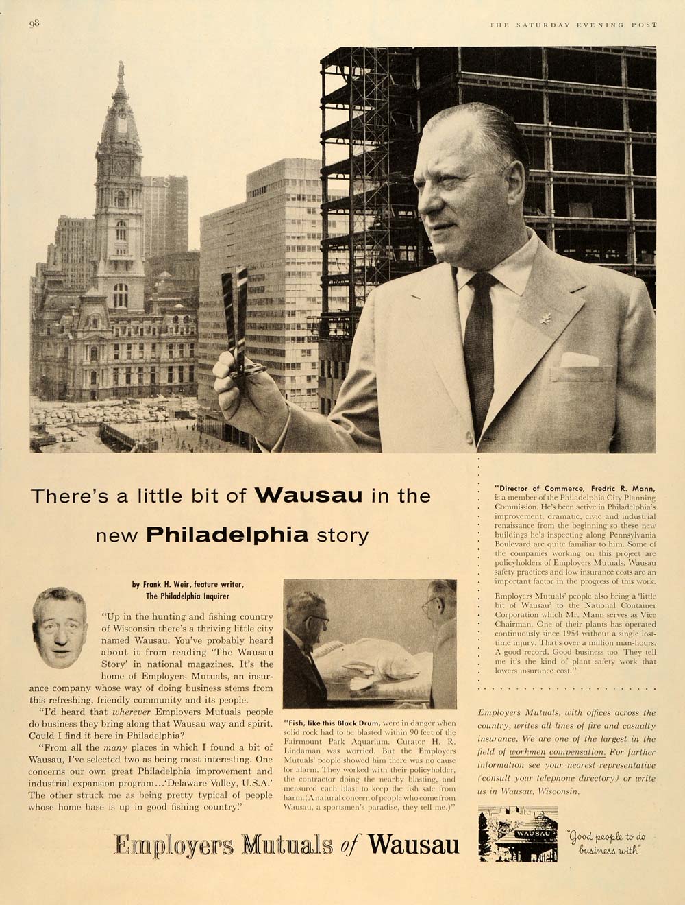Keywords specific to this image: Frank Weir, Philadelphia Inquirer, Wisconsin, Wausau, Delaware Valley, Fish, Black Drum, Lindaman, Fairmount, Aquarium, Employers Mutual, Fredric Mann, Philadelphia Vintage Advertising