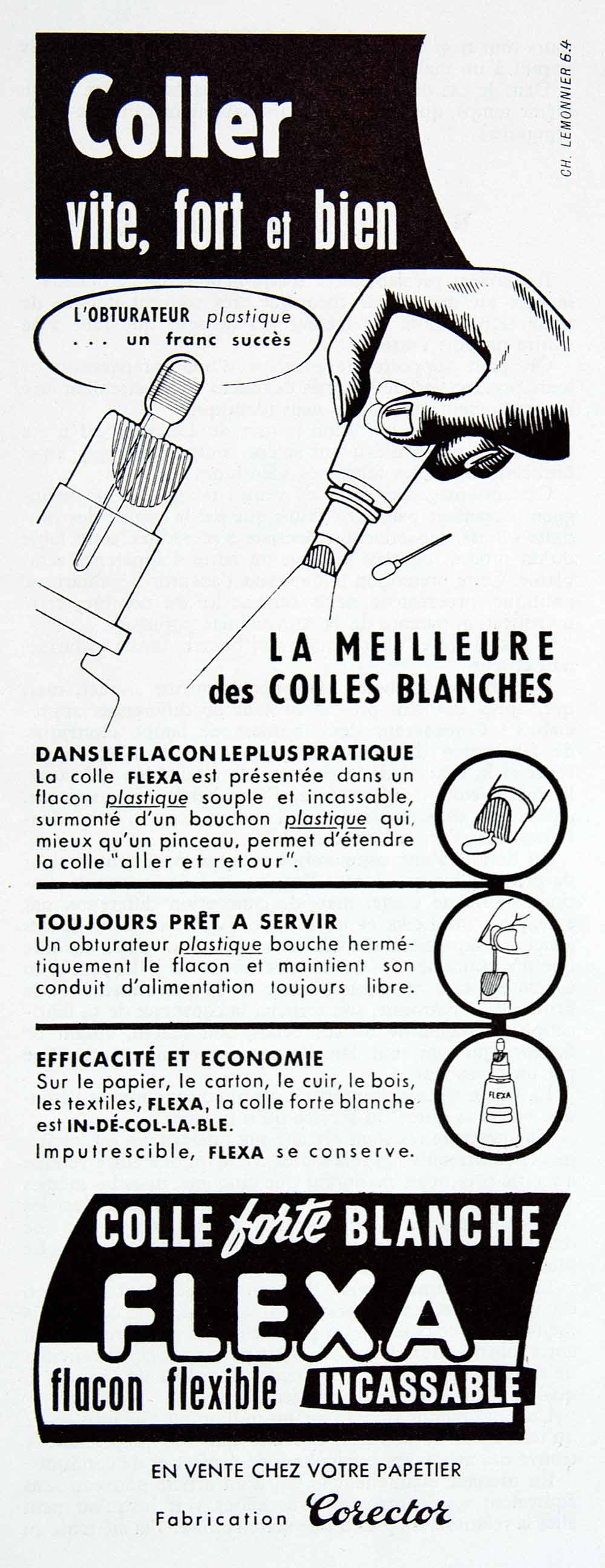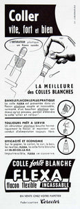 This is an original 1956 black and white print ad for Flexa super glue.