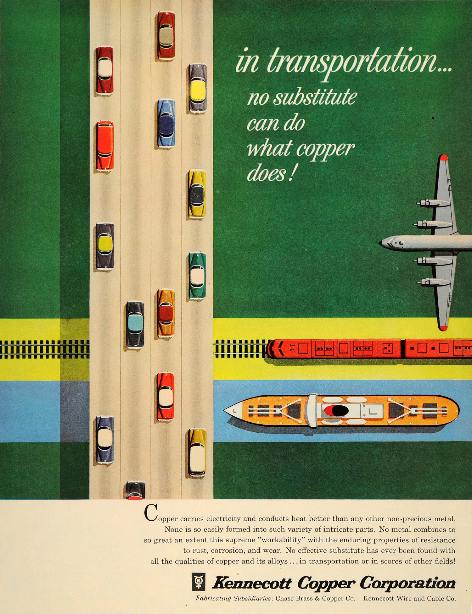 Keywords specific to this image: Chase Brass and Copper Company, Kennecott Wire and Cable Company, Airplane, Locomotive, Ship, Automobile Vintage Advertising