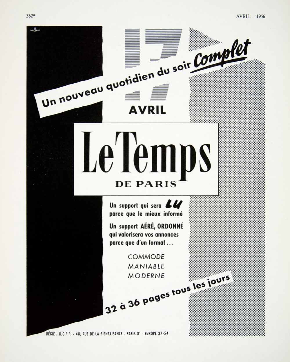 This is an original 1956 black and white print ad for the launch of French newspaper