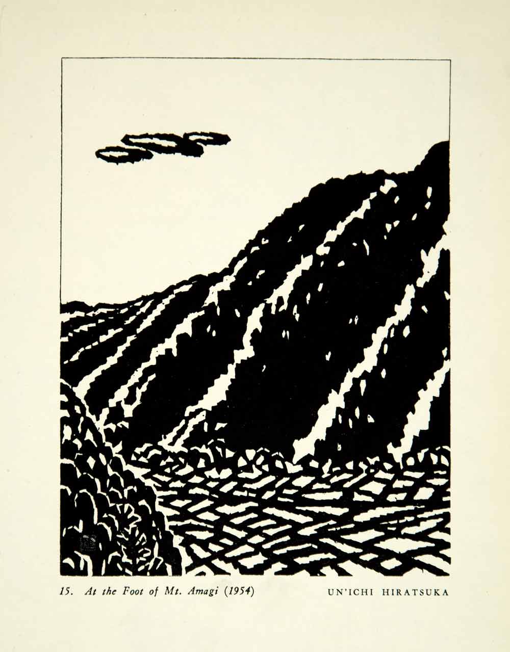 This is an original 1956 monochrome offset lithograph of a Japanese woodblock print by Un'ichi Hiratsuka.