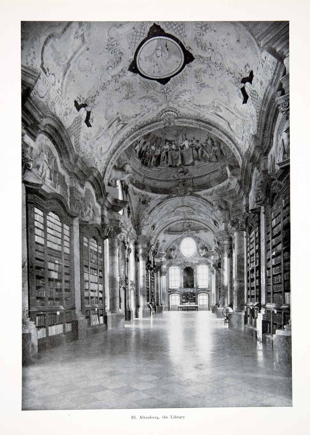 This is an original 1956 black and white halftone print of "Altenburg, the library," in Austria.