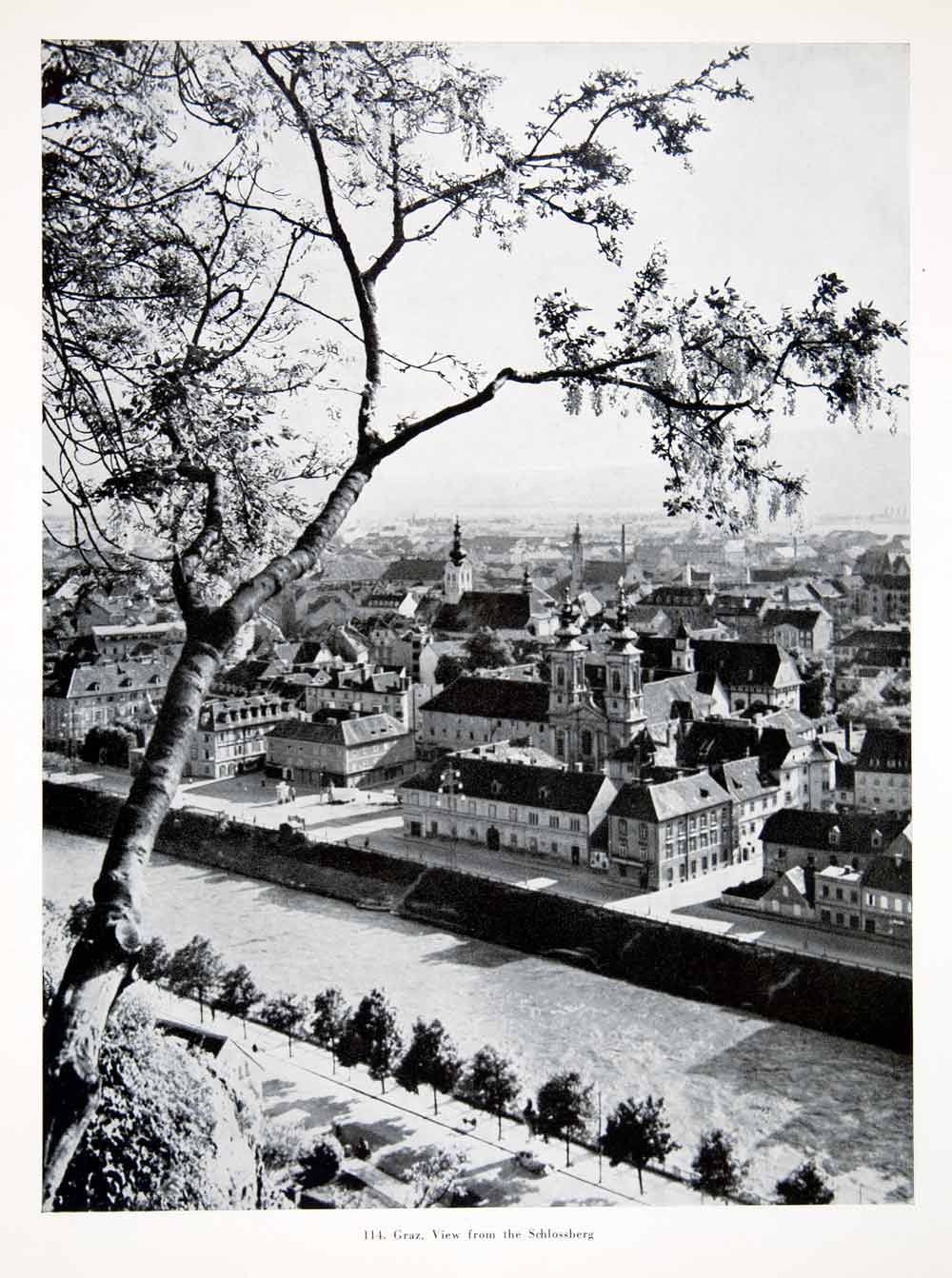 This is an original 1956 black and white halftone print of "Graz, a View from the Schlossberg," in Styria, in Austria.