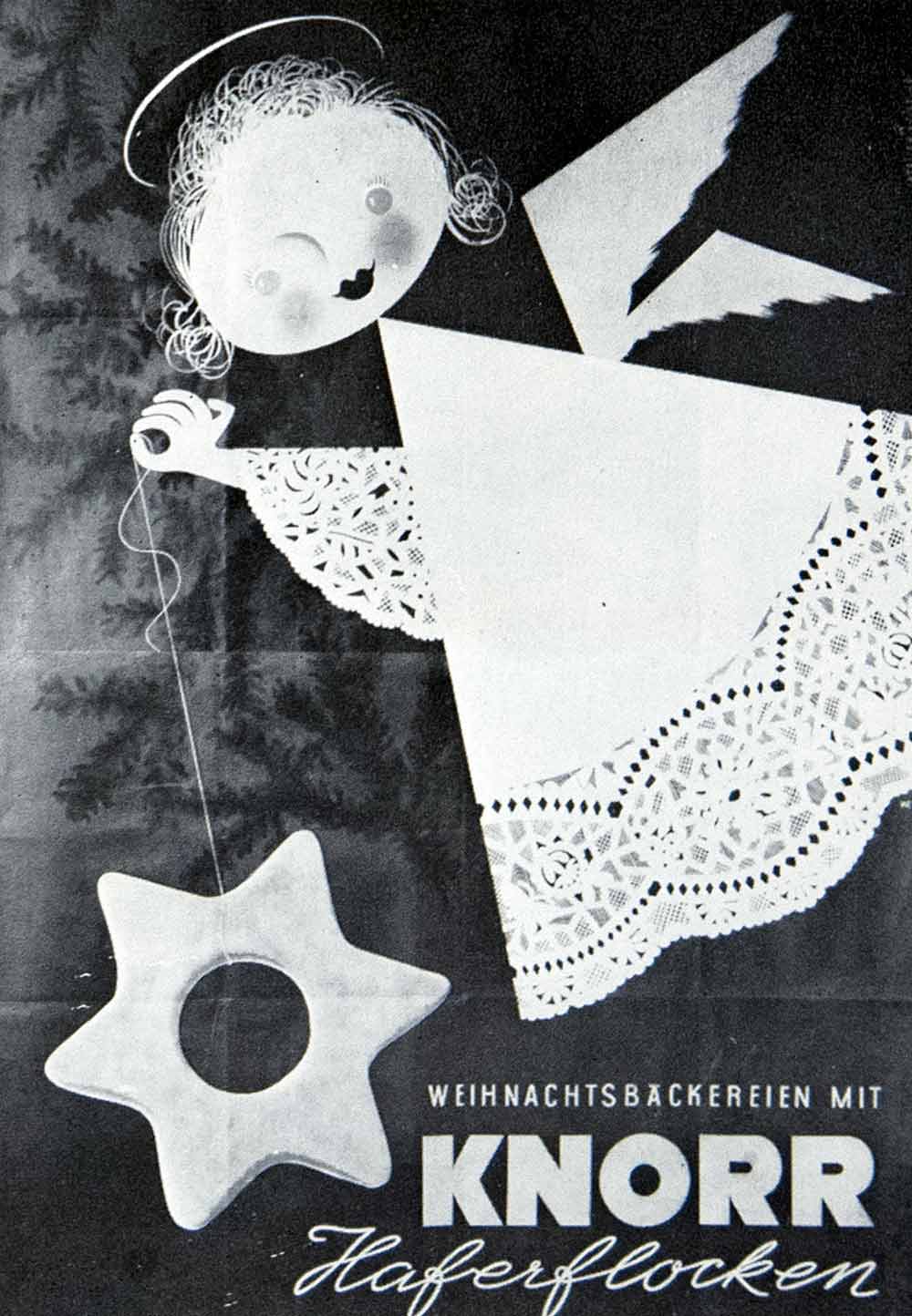 This is an original 1956 black and white halftone print of an Austrian advertisement by the Koszler agency for Knorr oats, the perfect addition to any Christmas baked goods.