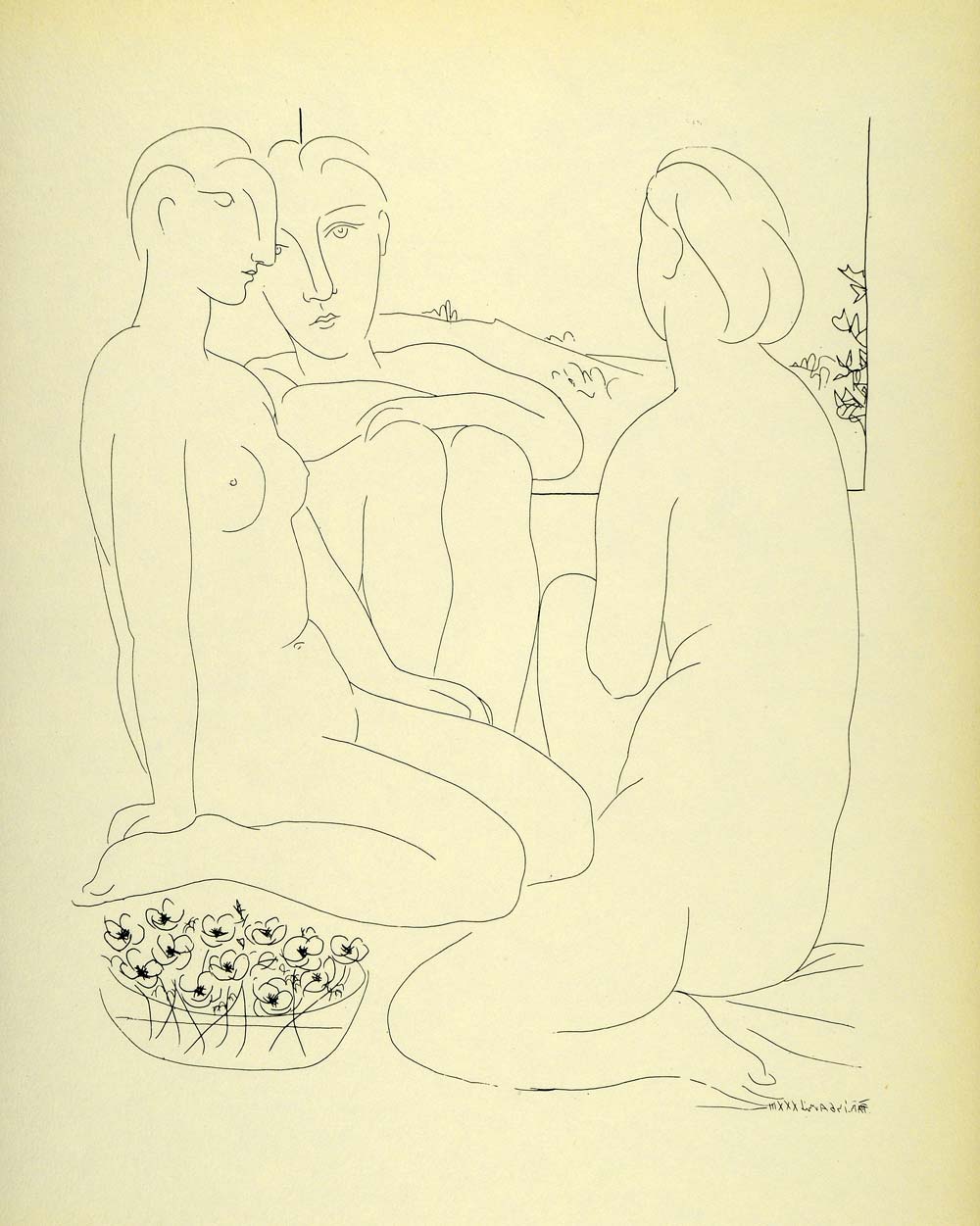 1956 Print Pablo Picasso Nude Female Figures Seated Basket Flowers Abstract Art
