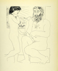 1956 Print Pablo Picasso Nude Male Sculptor Female Model Lovers Abstract Art