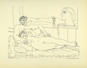 1956 Print Pablo Picasso Nude Sculptor Reclining Model Sculpture Head Abstract