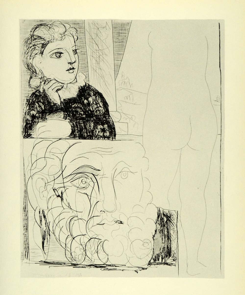 1956 Print Pablo Picasso Young Girl Nude Figure Male Head Suite Vollard Abstract