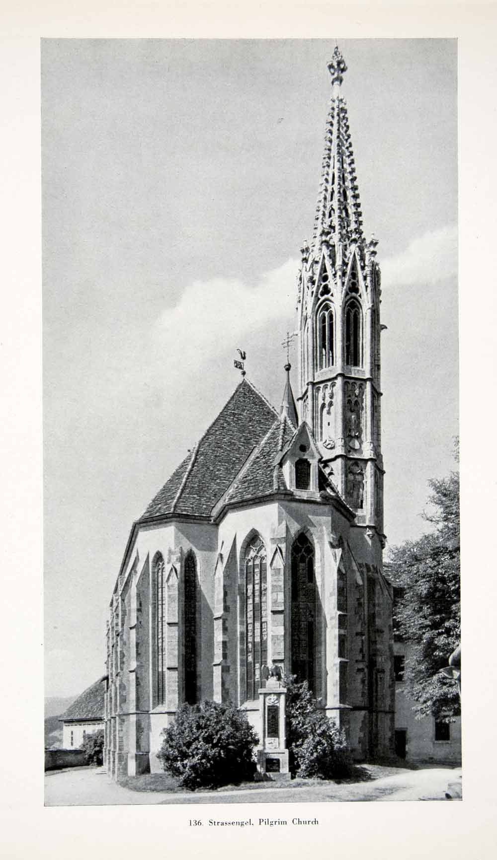 This is an original 1956 black and white halftone print of "Strassengel, Pilgrim Church," in Austria.