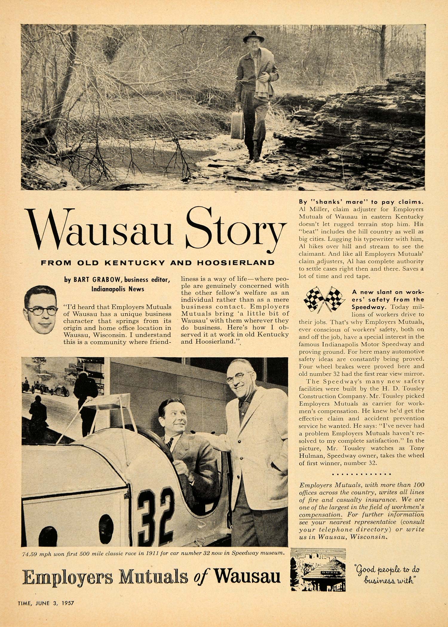 Keywords specific to this image: H.D. Tousley, Insurance, Casualty Insurance, Fire Insurance, Hoosierland, Speedway Museum, Wausau Wisconsin Vintage Advertising